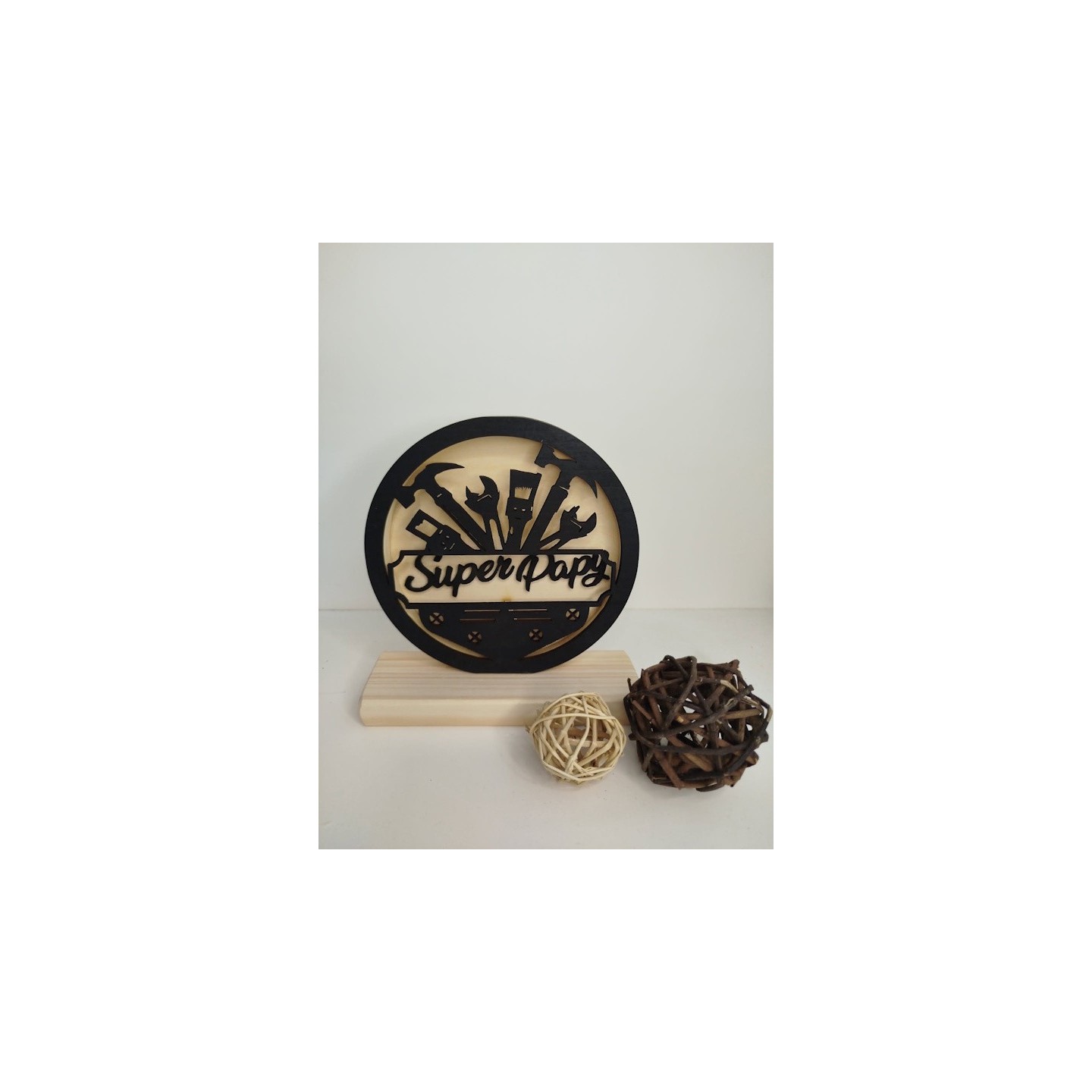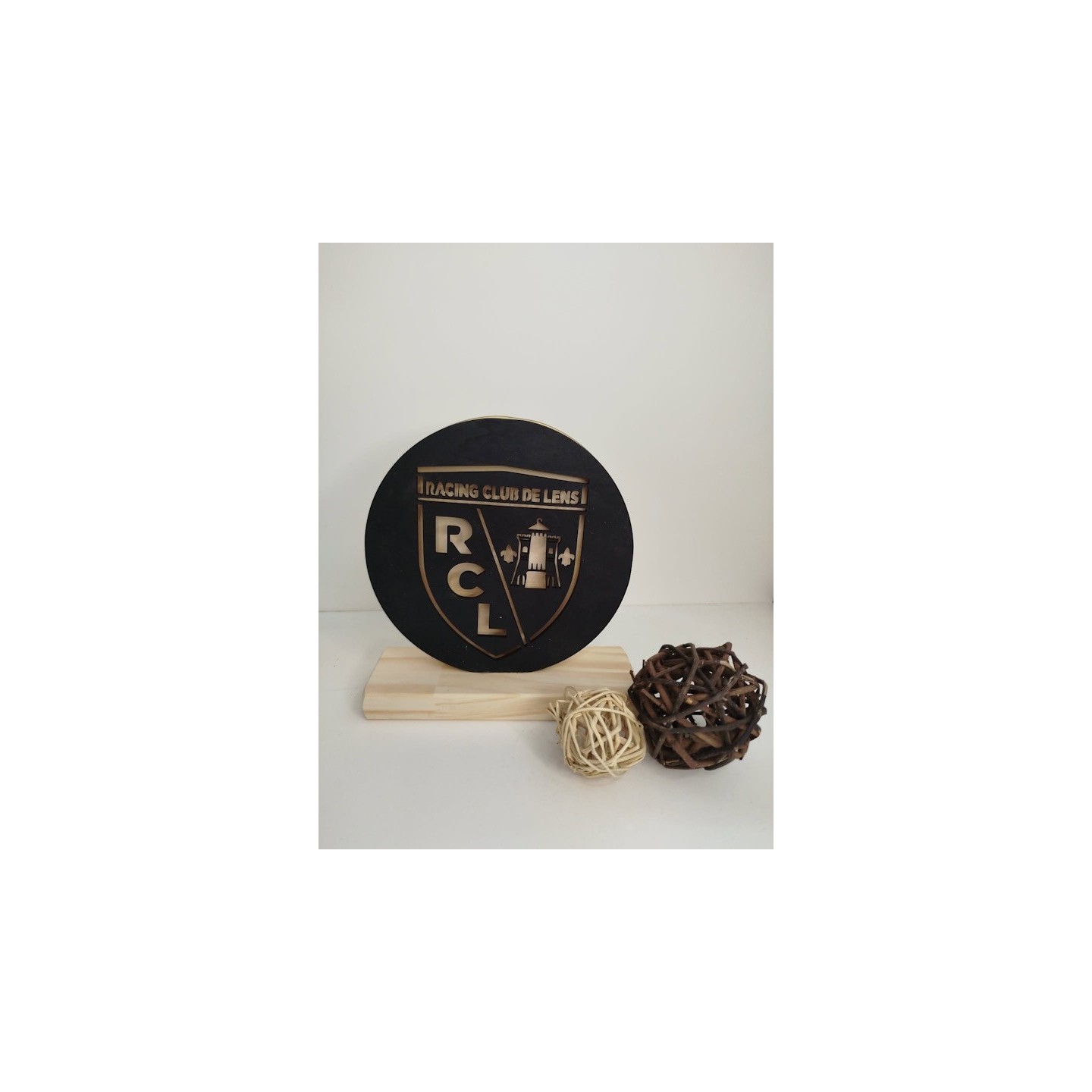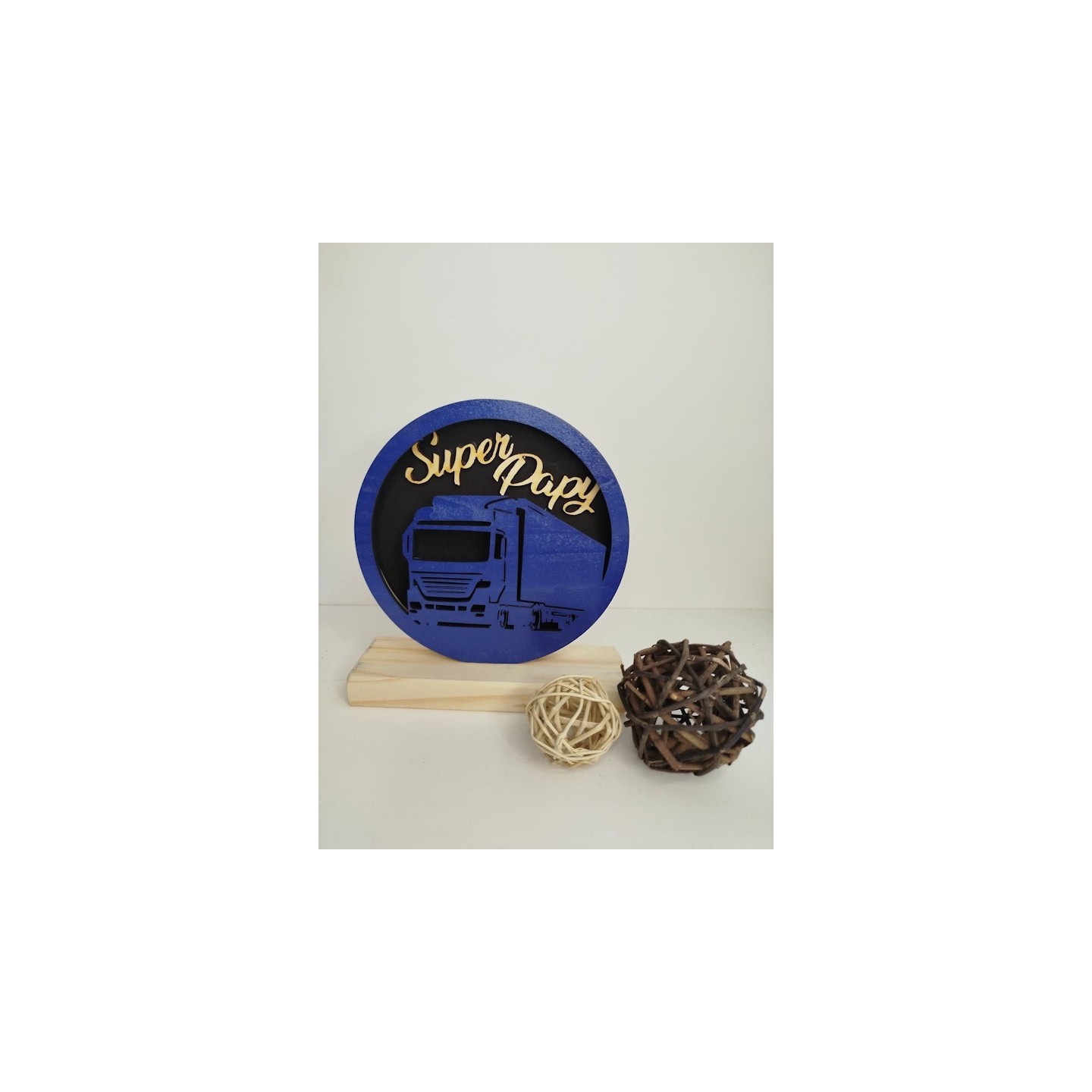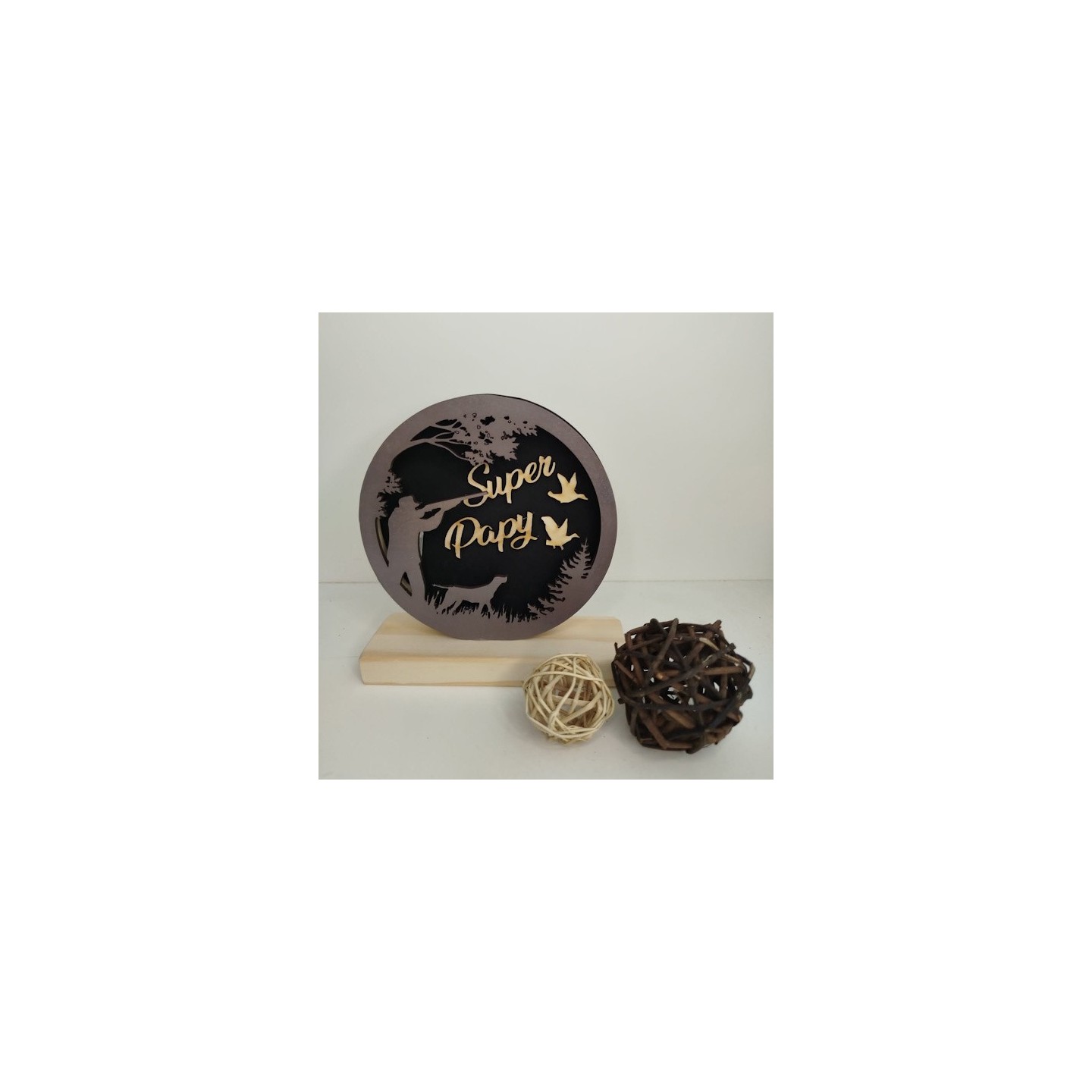 Lampe en bois diametre environ14cm sur socle theme au choix